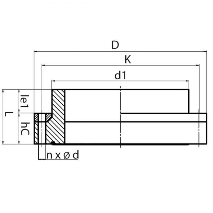 Art. No. | DN [mm] | d1 [mm] | D [mm] | L [mm] | K [mm] | n | ød [mm] | hC [mm] | kg |