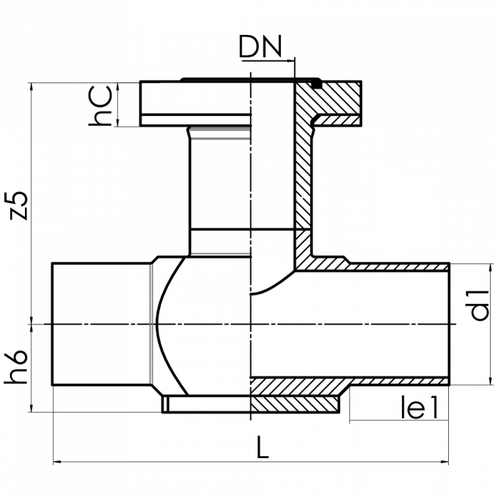 Art. No. | DN [mm] | d1 [mm] | le1 [mm] | L [mm] | z5 [mm] | hC [mm] | kg |