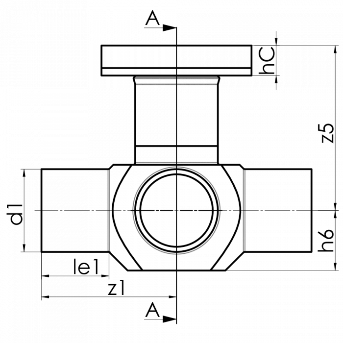 Art. No. | DN [mm] | d1 [mm] | d2 [mm] | le1 [mm] | le1* [mm] | le2 [mm] | z1 [mm] | z2 [mm] | h6 [mm] | z5 [mm] | hC [mm] | kg |