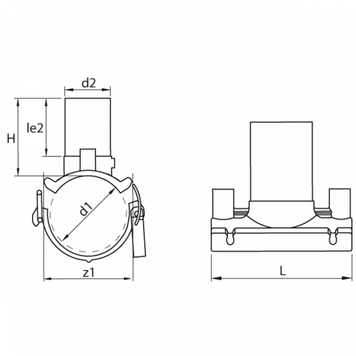 Art. No. | d1 [mm] | d2 [mm] | le2 [mm] | L [mm] | z1 [mm] | H [mm] | VE | kg |