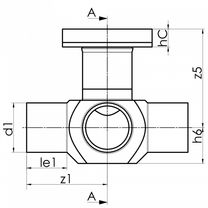 Art. Nr. | DN [mm] | d1 [mm] | d2 [mm] | le1 [mm] | le1* [mm] | le2 [mm] | L [mm] | z1 [mm] | z2 [mm] | h6 [mm] | z5 [mm] | hC [mm] | kg |