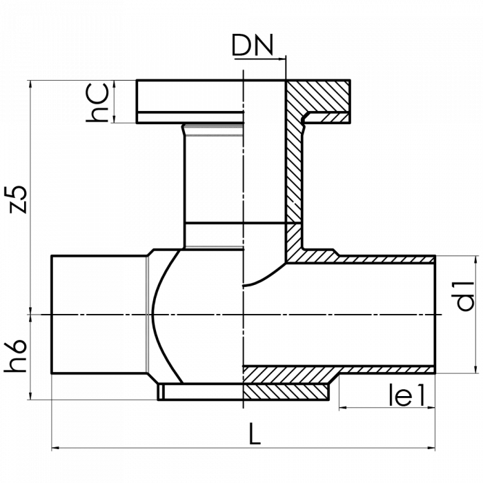 Art. Nr. | DN [mm] | d1 [mm] | le1 [mm] | le1* [mm] | L [mm] | z1 [mm] | z5 [mm] | hC [mm] | kg |